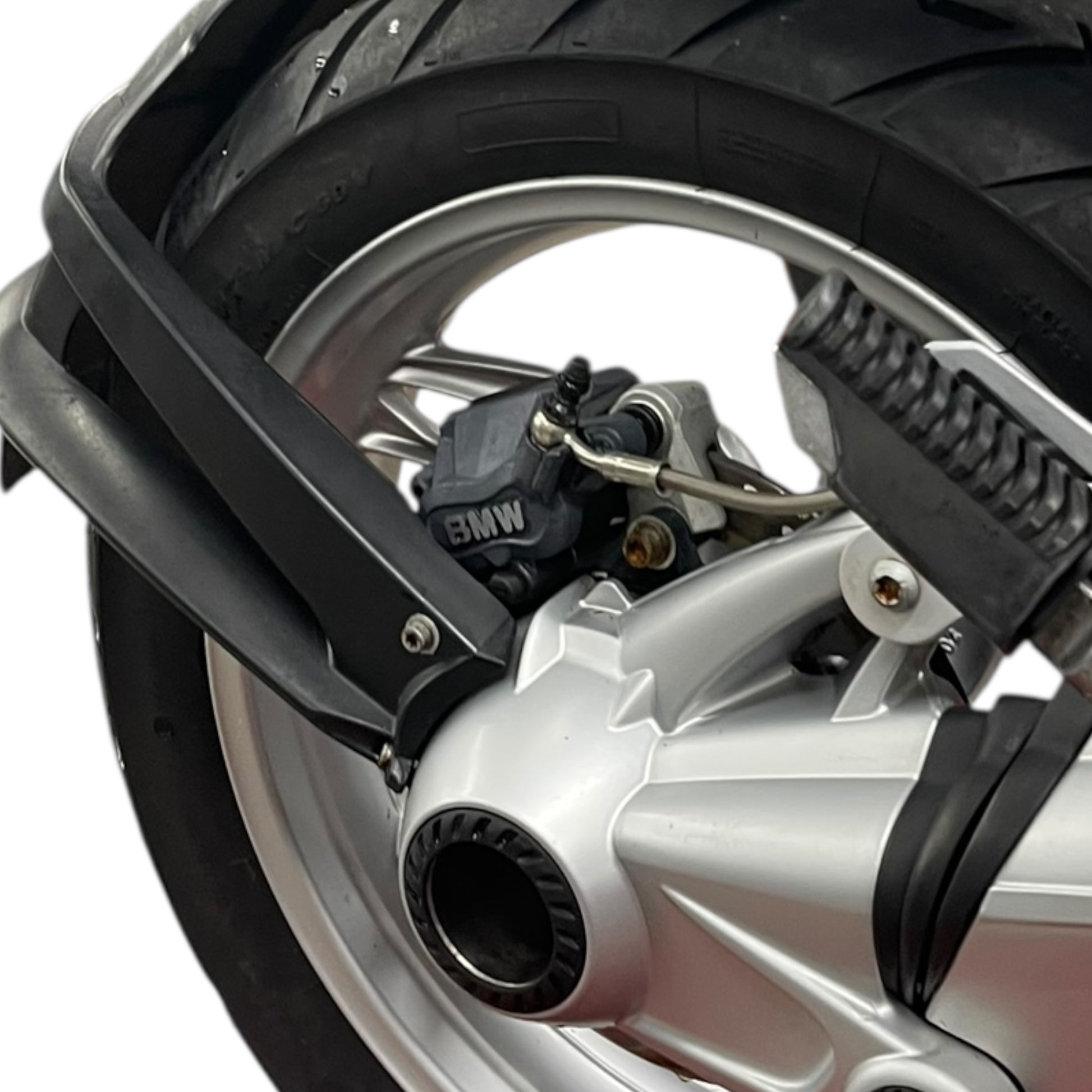 MW K25 R1200GS rear brake caliper including bracket and mounting screws. Brake pads not included.